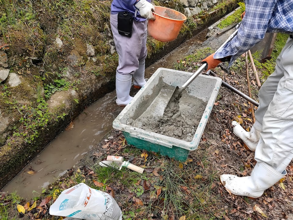 とはいえ、長年使用している水路は経年劣化で破損し、水漏れすることもしばしば。そのため毎年点検をしては、自分たちで補修をしていきます。