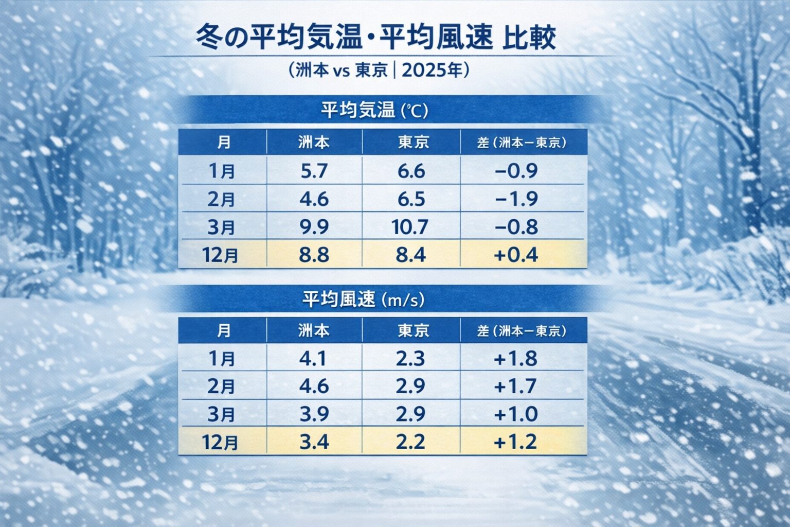 また、同じ気温でも【無風の東京】と【強風の淡路島】では、体感温度はまったく別物。