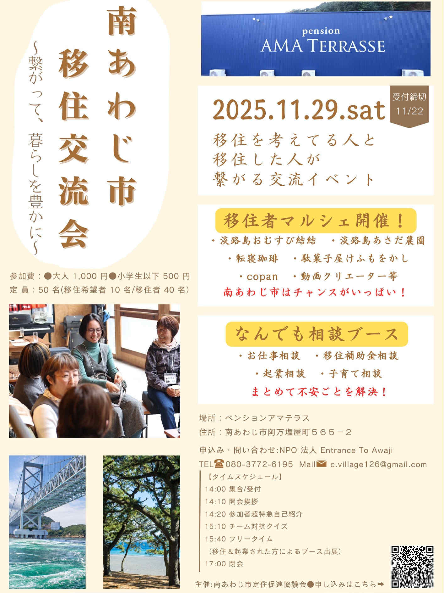 これから南あわじ市へ移住を検討されている方、すでに南あわじ市へ移住された方、