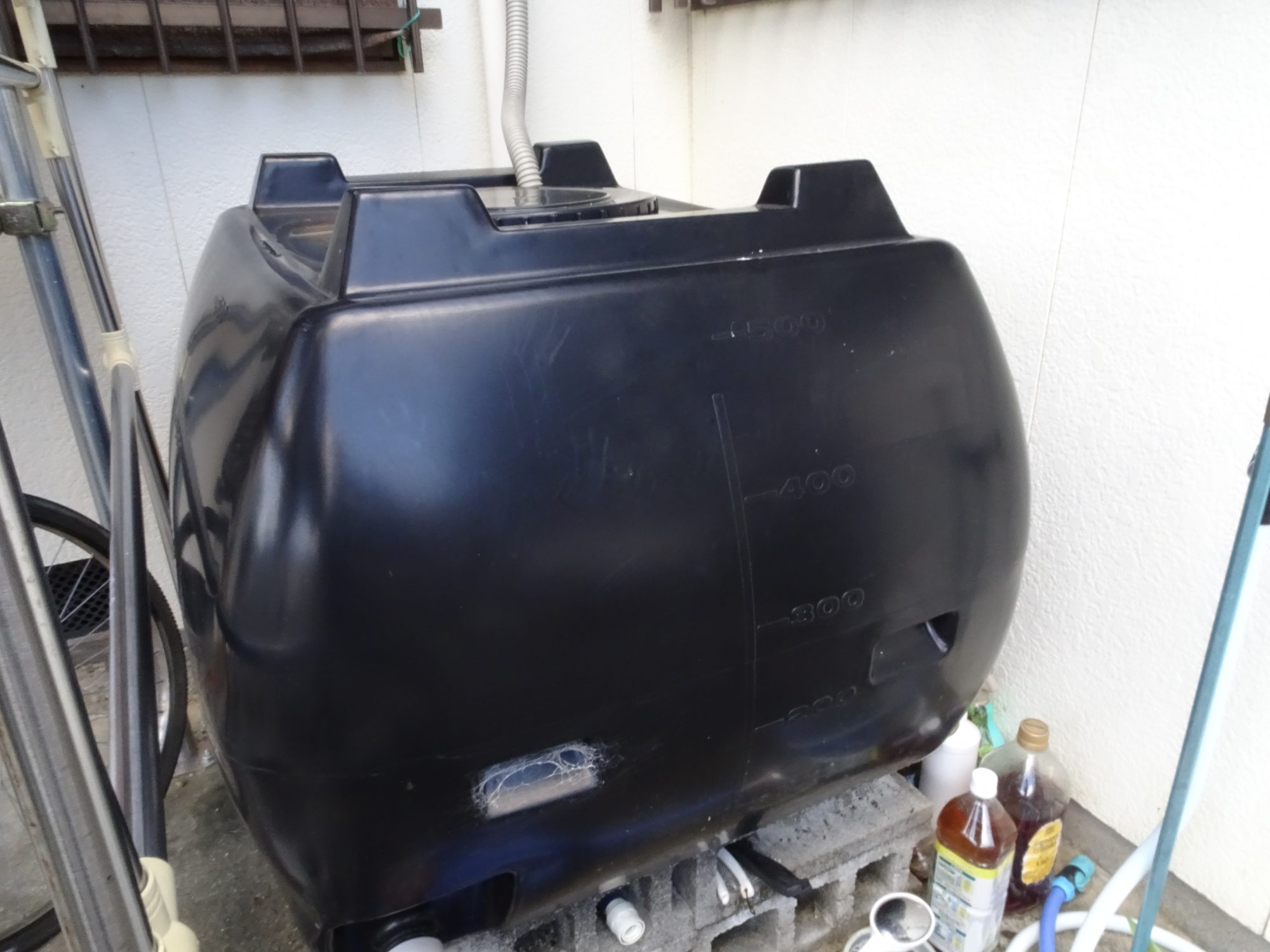 こちらは今からちょうど4年前に設置したタンクで、容量は500ℓ。普段は庭木の水やりに使っていますが、いざというときはトイレを流したり、洗濯などにも使用する予定です。